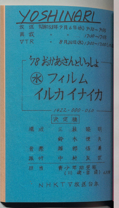 主な出演 : 旗照夫,真理ヨシコ,江川明,(演奏)新室内楽協会,ボーカルショップ,みつばち工房,かかし座,川本喜八郎,三角永子