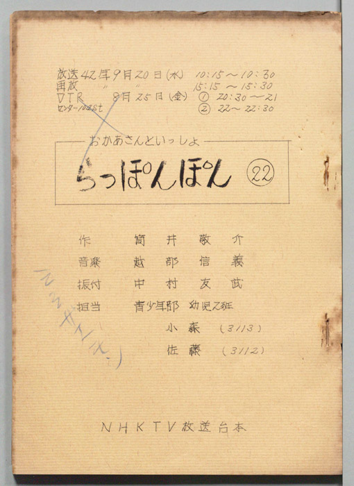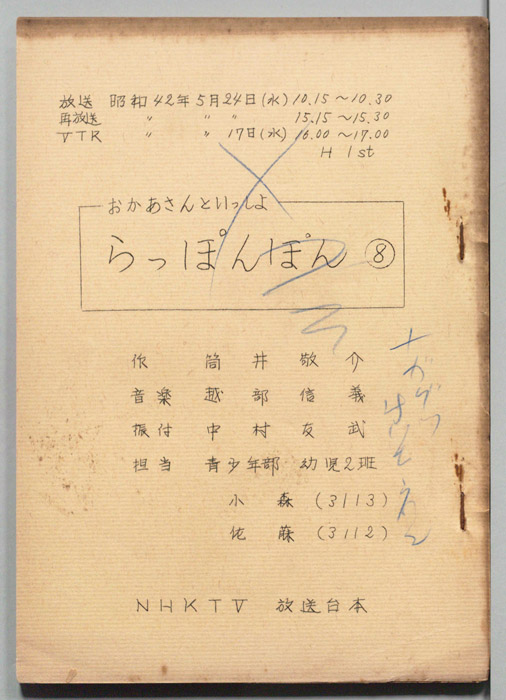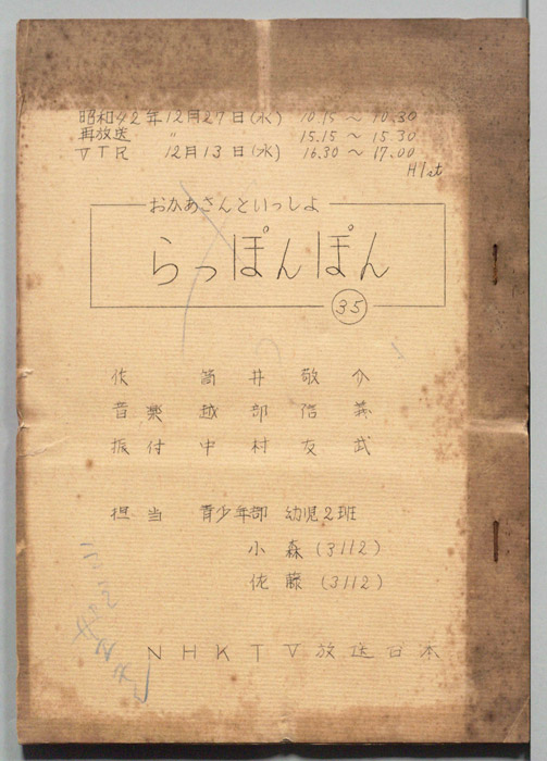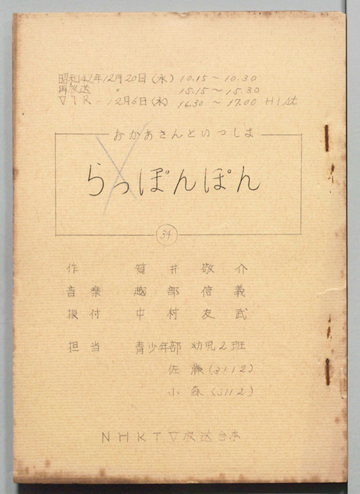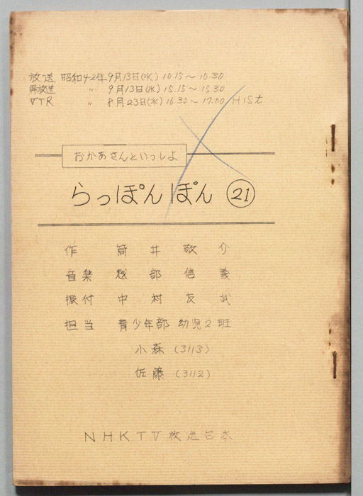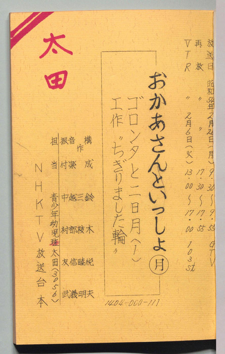 主な出演 : (司会)輪島直幸,(うた)斉藤伸子,たいらいさお,(たいそう)瀬戸口清文,(ぬいぐるみの声)大塚周夫,菅谷政子,北川智絵,(ぬいぐるみ)桜本晶弘,田原加代,千早蘭,(人形美術)川本喜八郎,岡部久義,(アニメーション)若井丈児,(エ
