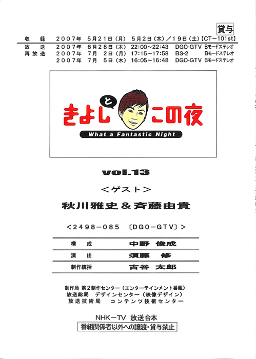 主な出演 : 松本明子,村松邦洋,(ナレーター)木村匡也,(スペシャルゲスト)小林よしのり