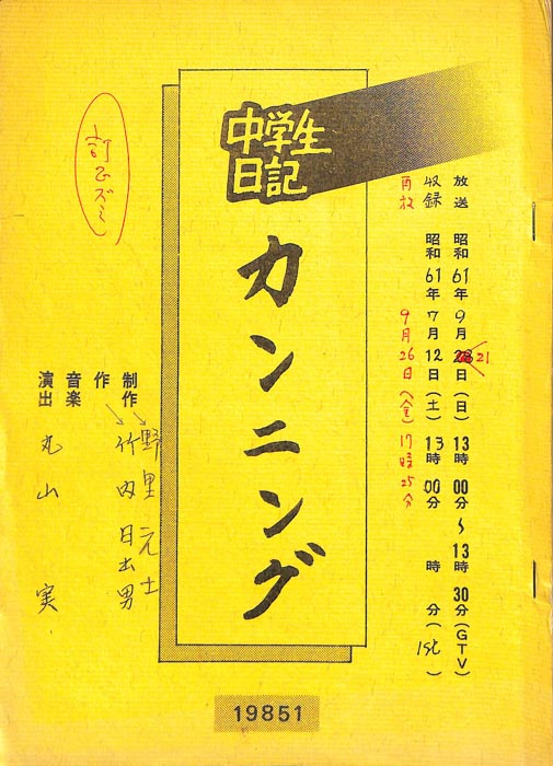 主な出演 : 岡田構,神谷みゆき,高橋信一郎【中学生日記】 中学生日記は1972年から2012年3月まで長きに渡って放送された学園ドラマである。1962年4月から放送された「中学生次郎」という番組を前身とし、何度か番組名を変更しつつ本ドラマに至る。最