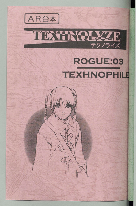 主な出演 : (櫟士(イチセ))羽賀聖,(吉井一穂)井之上隆史[井之上隆志],(蘭)伊藤静,(ドク(鎌田江里子))二木静美,(大西京呉)土田大,(広田道子)佐久間紅美,(櫟士の母親),(スナイパーA),(失笑する発掘員A),(失笑する発掘員B)『TEXHNOLYZE』(テクノライズ) 地底に作られ、外界から隔離されたた流9洲(ルクス)は絶望と暴力によって支配される荒廃した街で、行き場を無くした者たちが行き着く吹き溜まりと化していた。そんな流9洲