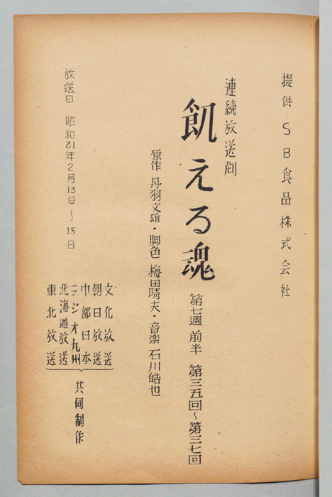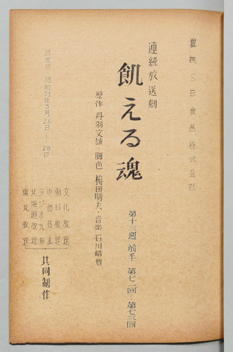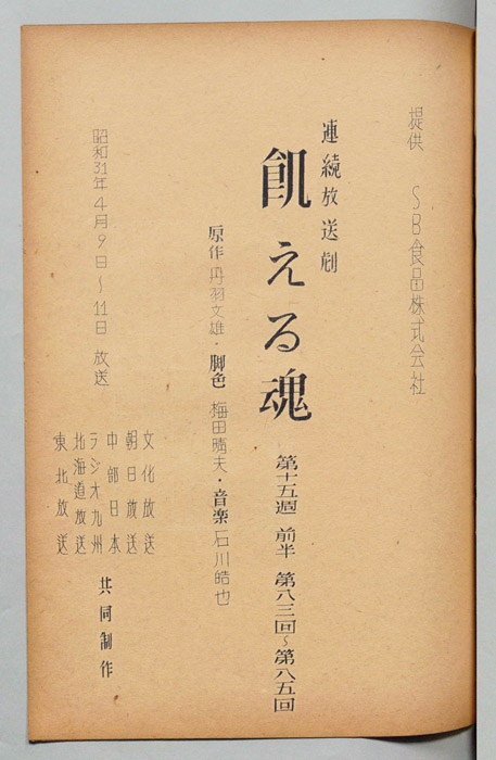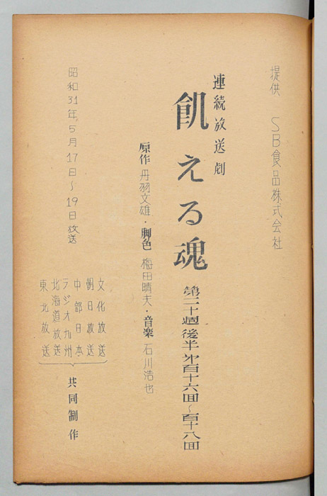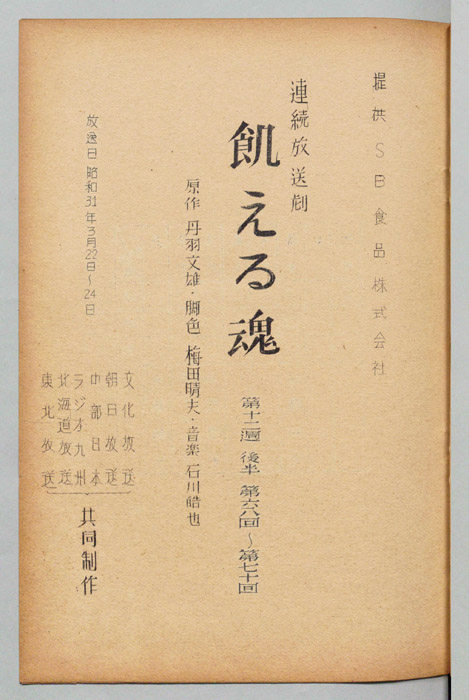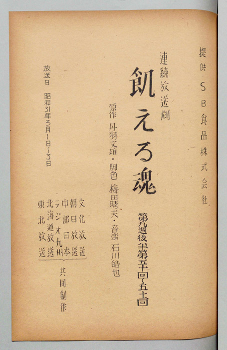 主な出演 : 若山セツ子,大河内稔,久米明,鈴木光枝,浅川祐子,(語り手)加藤和夫