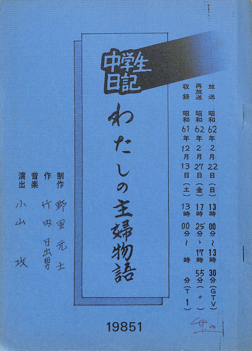 主な出演 : 新谷順子,鎌田吉三郎,平石進【中学生日記】 中学生日記は1972年から2012年3月まで長きに渡って放送された学園ドラマである。1962年4月から放送された「中学生次郎」という番組を前身とし、何度か番組名を変更しつつ本ドラマに至る。最