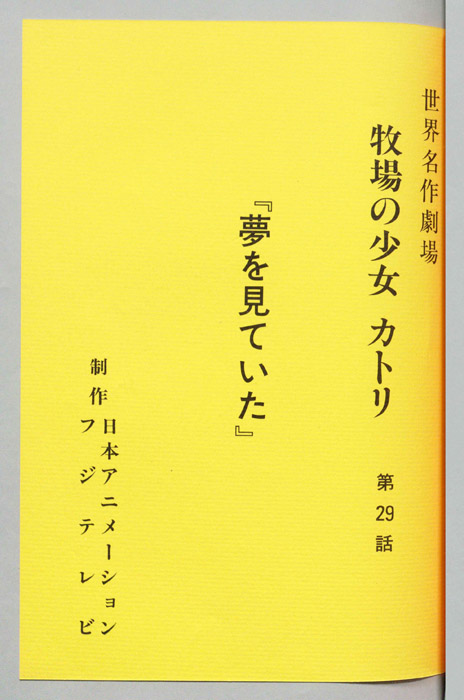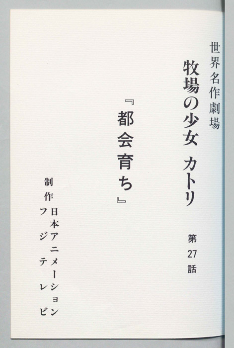 主な出演 : [カトリ:及川ひとみ,テーム:野島昭生,ウッラ:杉田郁子,エスコ:上田敏也,アイネリ:鈴木れい子,ビビトリ:藤井つとむ,サラ(カトリの母)藤田淑子,ユリス(カトリの祖父):宮内幸平,イルダ(カトリの祖母):京田尚子,マンダ(ペッカ):塩【牧場の少女カトリ】1915年、南フィンランドの農村で暮らす少女「カトリ」は幼くして父親を亡くし、母親の「サラ」はドイツへと出稼ぎに出たが、間もなく第一次世界大戦が勃発してしまい、音信不通となって仕送りも途絶えてしまう。カ