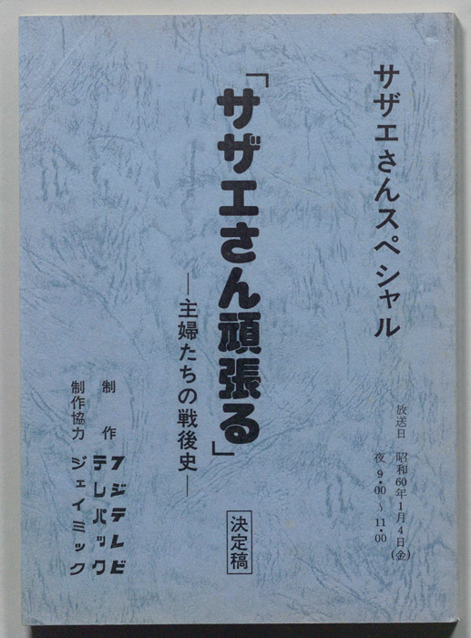 主な出演 : 星野知子,小野寺昭,高山幸久,小林亜星,乙羽信子,斉藤優一,網田麻澄,五木ひろし,片平なぎさ,加藤芳郎,鈴木ヒロミツ,増田葉子,畑正憲,斉藤慶子,斉藤ゆう子,野々村誠,羽賀健二,久保田篤,林真理子,三宅裕司,スーパーエキセントリック,志東京の静かな住宅地に住む「磯野家」には、父・波平、母・フネ、長女・サザエ、長男・カツオ、次女・ワカメが周囲の人々と共に、賑やかに暮らしていた。後にサザエはフグ田マスオと結婚して、長男・タラオが誕生し三世代家族として、昭