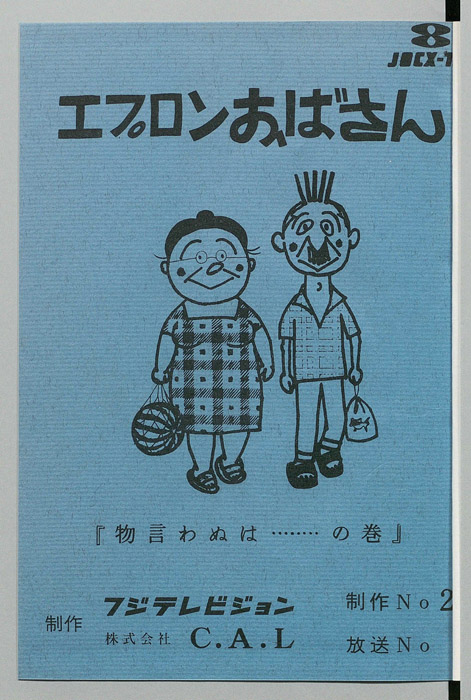 主な出演 : 冨士真奈美,柳生博,比企理恵,実川秀和,林家こぶ平,南部寅太,小林のり一,吉岡睦子,染谷仁奈,なべ・おさみ,安田伸,三角八郎,冨山真沙子【エプロンおばさん】いつもエプロン(主に割烹着)を着ているため「エプロンおばさん」と呼ばれている。サラリーマンの夫と娘と一緒に下宿屋を切り盛りしている。主人公を中心に、下宿をしている大学生や探偵社に勤務している青年、や