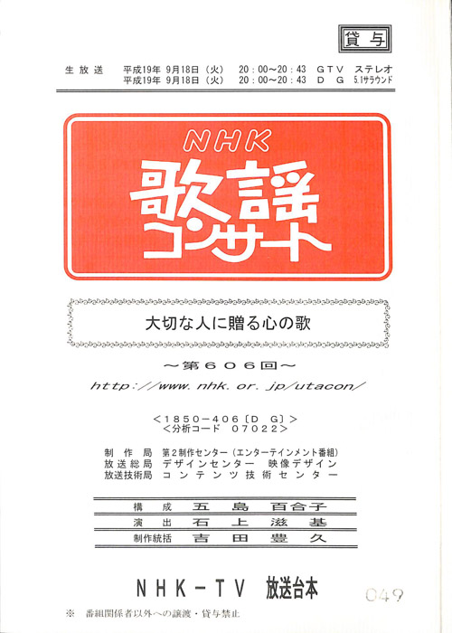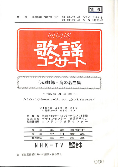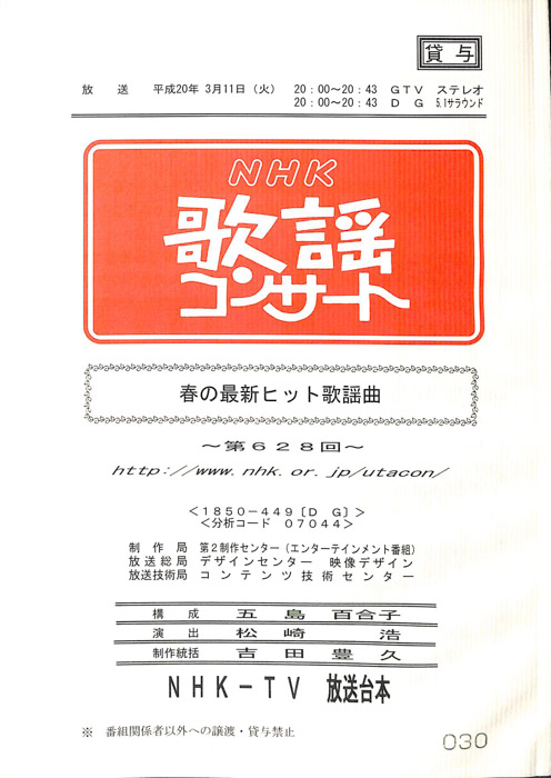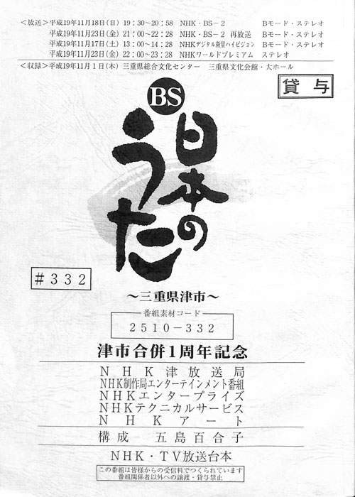 主な出演 : 秋川雅史,伍代夏子,神野美加