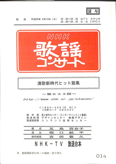 主な出演 : 中孝介,五木ひろし,川野夏美