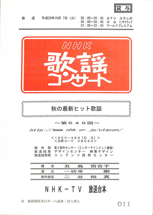 主な出演 : 秋元順子,石原詢子,岡ゆう子