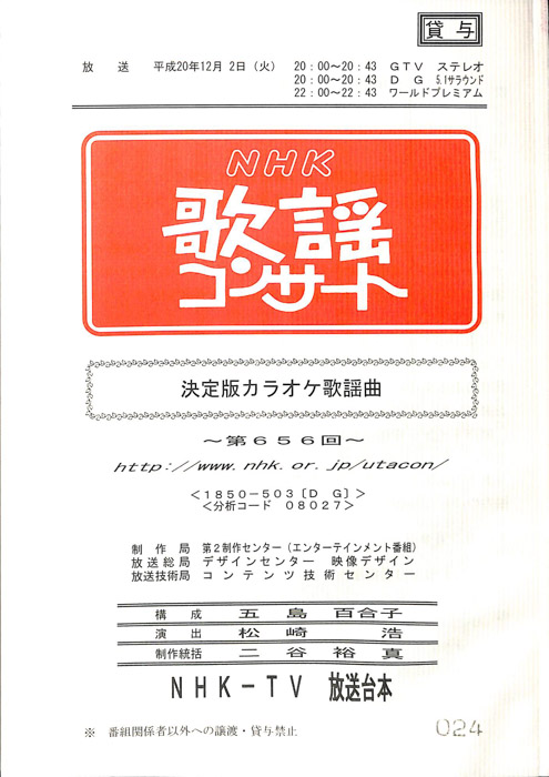 主な出演 : 石川さゆり,大月みやこ,松原のぶえ