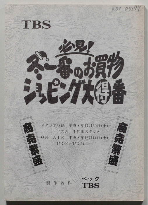 主な出演 : 大橋巨泉,松岡きっこ,原栄三郎,山片ユカ,五月みどり,加藤洋二,川井八重子,石渡利康,藤田佳の実,杉原淳とニューサラブレッズ,(VTR出演)伏見直樹,黒田政治,九十九黄人,物集高量