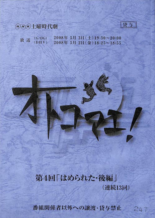 主な出演 : 福士誠治,斉藤工,井上和香,浅田美代子,松金よね子,佐藤江梨子,石橋蓮司,小倉一郎,佐戸井けん太,小須田康人,皆川猿時,片岡鶴太郎,柴田恭兵- 作家 : 菱田信也