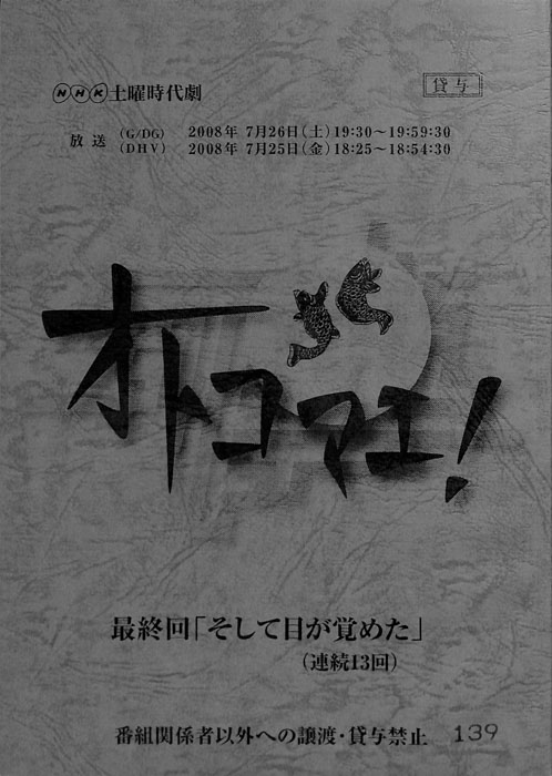 主な出演 : 福士誠治,斉藤工,井上和香,浅田美代子,松金よね子,佐藤江梨子,石橋蓮司,小倉一郎,佐戸井けん太,片岡鶴太郎,柴田恭兵- 作家 : 今井雅子