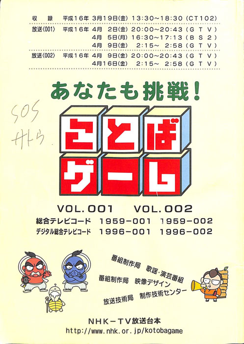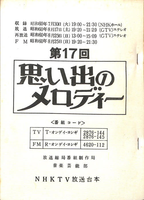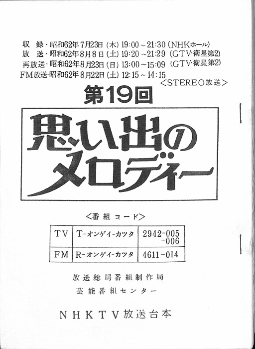 主な出演 : (司会)鈴木健二アナウンサー,(小山チーム)小山明子,佐々木守,岡崎友紀,(五大チーム)五代路子,河原崎国太郎,中村梅雀,(三橋チーム)三橋達也,白都真理,かたせ梨乃,(船村チーム)船村徹,あべ静江,浅茅陽子,(特別講師)丹羽正明/音