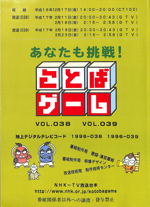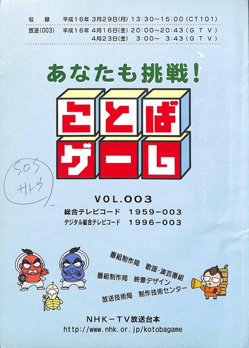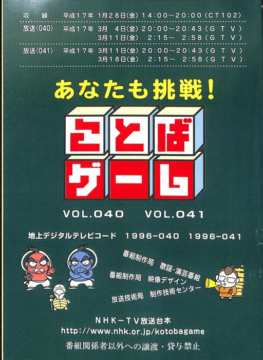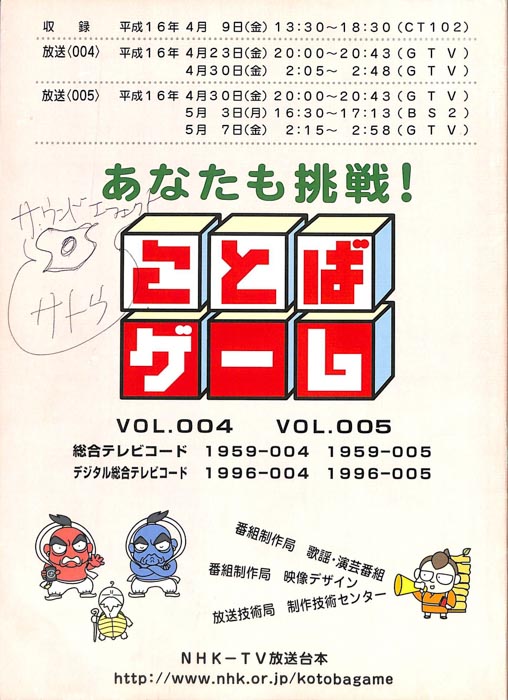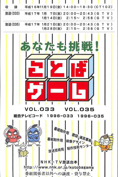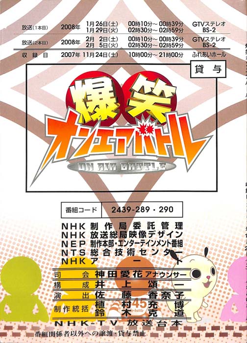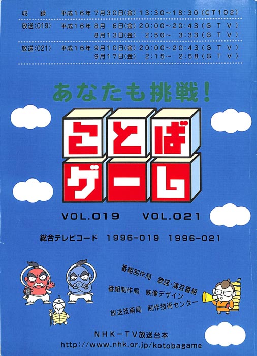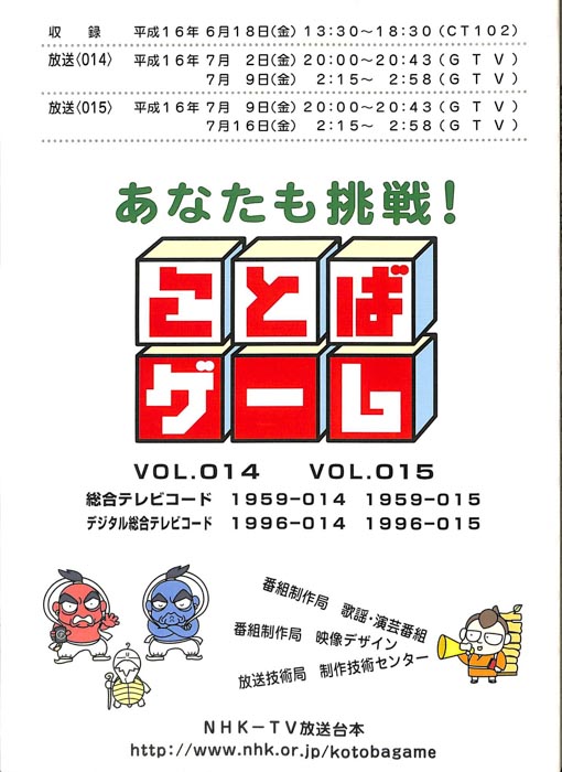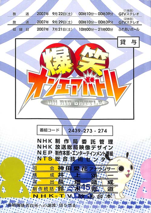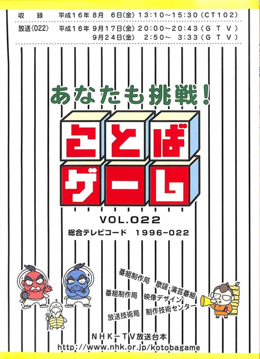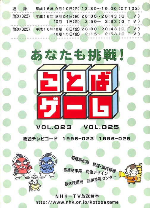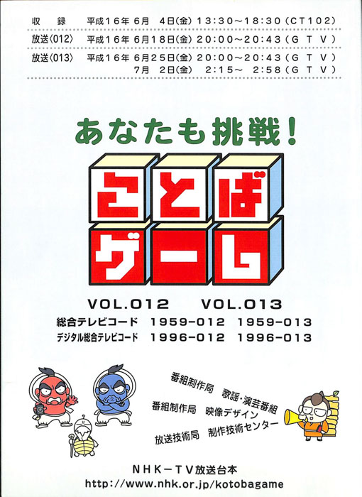 主な出演 : 赤井チーム,茂山チーム,雪村チーム,ちゅらさんチーム,伊根町チーム,西川かの子,天野隆子,神吉彦,アメデオ,イヌがニャーと泣いた日,クワバタオハワ,三拍子,(アシスタント)市井優,聖佳,鮎川美和,(司会)国井雅比古アナウンサー,有