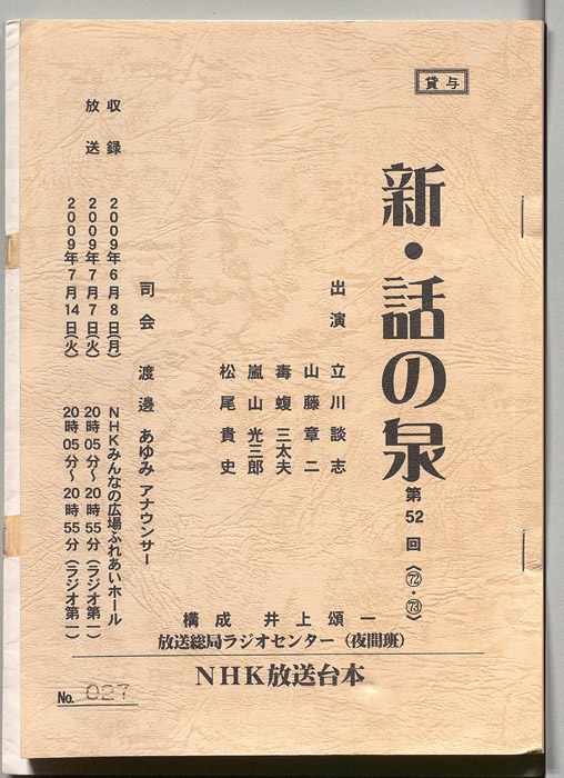 主な出演 : 立川談志,山藤章二,毒蝮三太夫,嵐山光三郎,松尾貴史,(司会)渡邉あゆみアナウンサー
