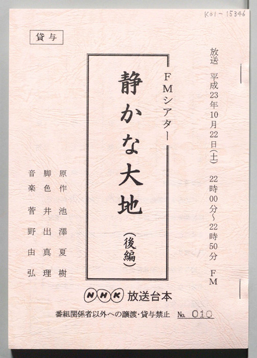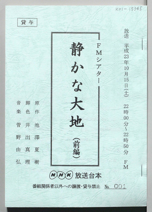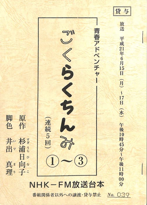主な出演 : 角替和枝,岡本易代,沼田爆,柴田侊彦,銀河万丈,小林さやか,悠木千帆,宇宙,勝島乙江,柳澤愼一,大高洋夫唐沢潤,石田太郎,長谷川真弓,石田圭祐,野々村のん,鈴木一功,千野羽舞,鈴木孝正- 作家 : 井出真理