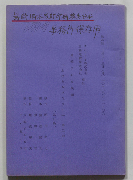 主な出演 : [叶順子,六本木真,宇津井健,三田村元,弓恵子,守田学,春本富士夫,丹阿弥谷津子,仁木多鶴子,角梨枝子,長谷川峰子,岸正子,酒井三郎,飯塚昌二,影山さゆり,中谷勲,中田勉,竹里光子,夏木章,大山健二,伊東光一,仲村隆,古谷徹]- 作家 : 舟橋和郎,小滝光郎