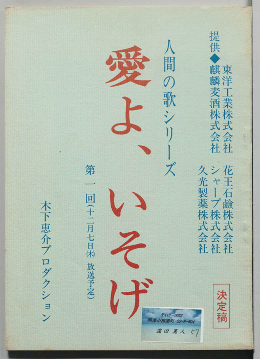 主な出演 : 石原裕次郎,渡哲也,小山田宗徳,高品格,小野武彦,松田優作,粟津號,神田正輝,峰竜太,苅谷俊介,美田麻紗子,丘みつ子,舛田紀子,森正親,仁科明子,- 作家 : 倉本聰