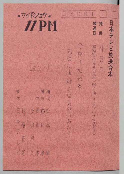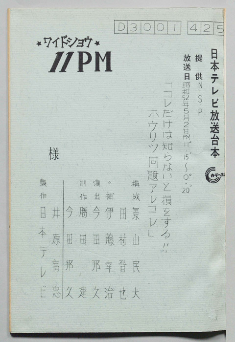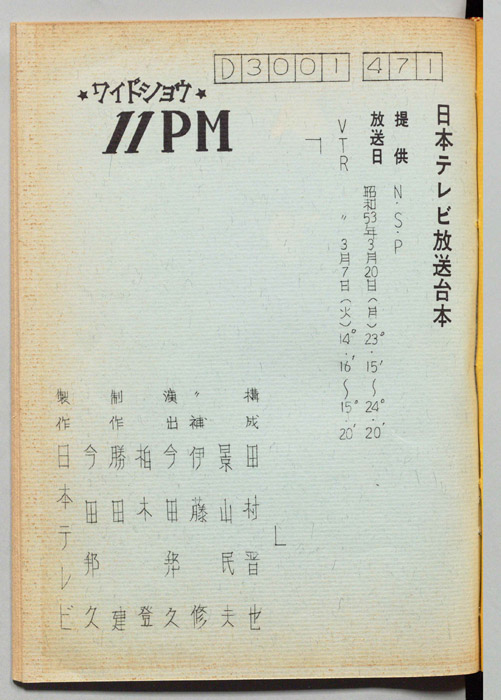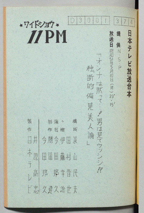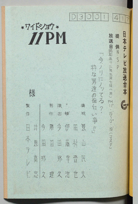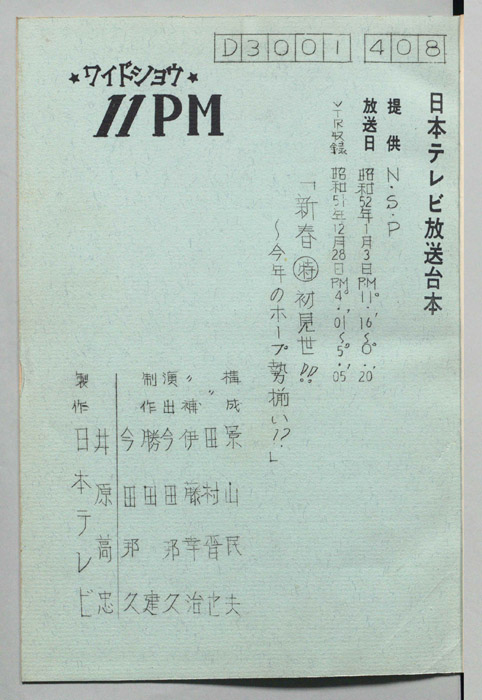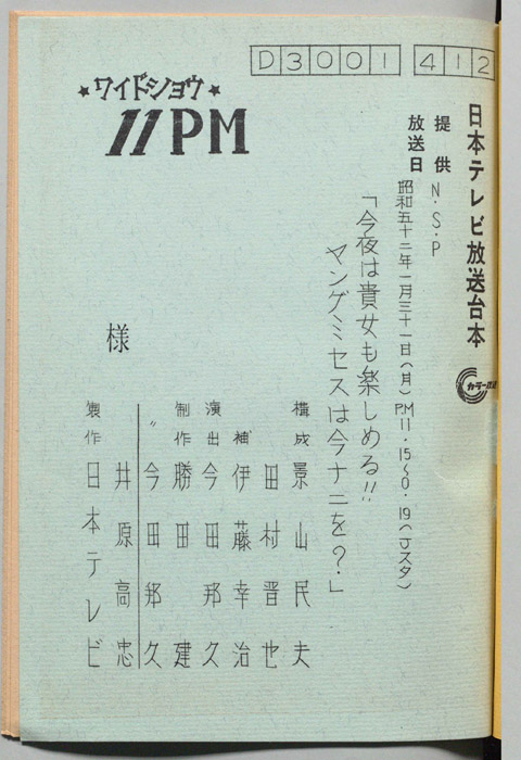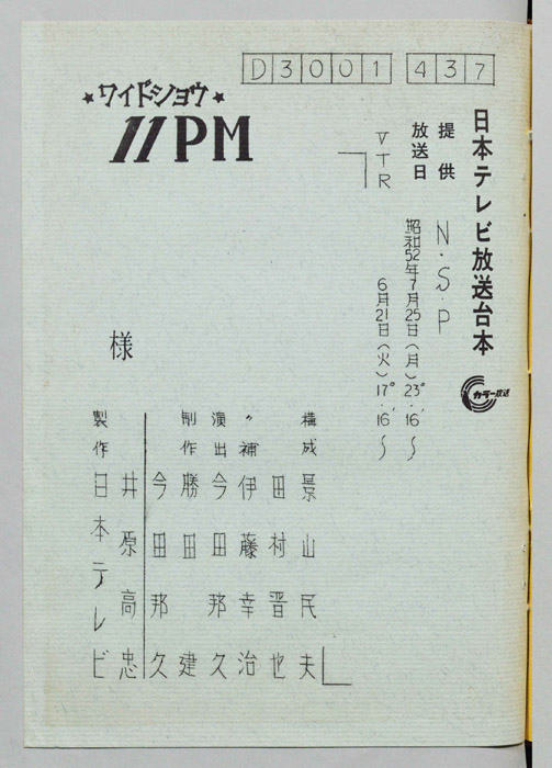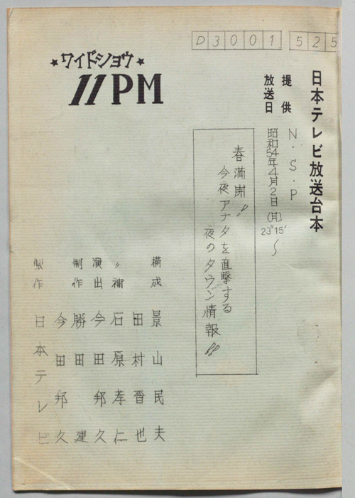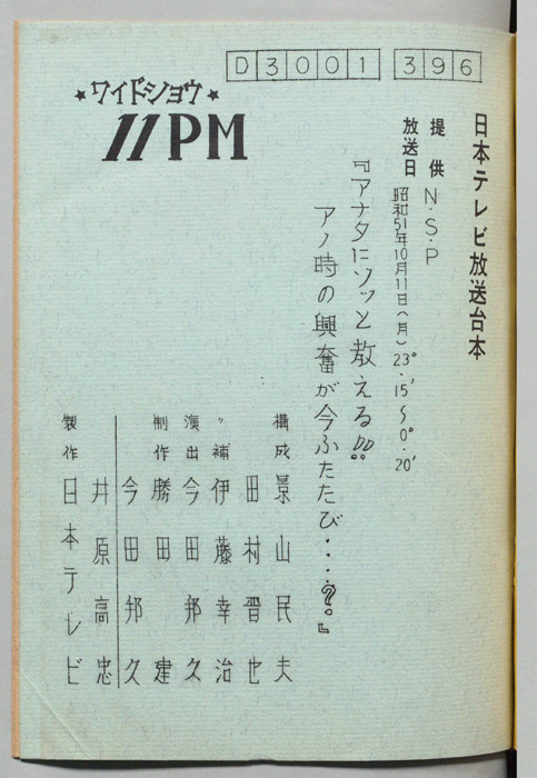 主な出演 : 由美かおる,横山プリンとアラモード:横山プリン,高井ギャラ,松原秀樹,徳光和夫:NTV,(コーラス)トライアングル,(踊り)ザ・ステッカーズ,(楽団)高橋達也と東京ユニオン,(ゲストスター)研ナオコ,湯原昌幸,レッゴー三匹,(む- 作家 : 岩城未知男,尾上たかし,章田宙也,パジャマ党,西野皓三
