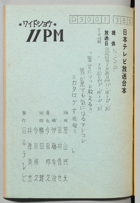 主な出演 : 由美かおる,横山プリンとアラモード:横山プリン,横山ギャラ,松原秀樹,徳光和夫:NTV,(コーラス)トライアングル,(踊り)ザ・ステッカーズ,(楽団)高橋達也と東京ユニオン,(ゲストスター)桜田淳子,藤正樹,正司敏江,正司玲児- 作家 : 西野皓三,岩城未知男,尾上たかし,章田宙也,パジャマ党