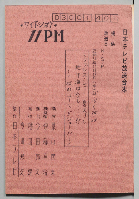 主な出演 : 由美かおる,横山プリンとアラモード:横山プリン,横山ギャラ,松原秀樹,徳光和夫:NTV,(コーラス)トライアングル,(踊り)ザ・ステッカーズ,(演奏)高橋達也と東京ユニオン,(ゲストスター)山口百恵,美川憲一,宍戸錠- 作家 : 西野皓三,岩城未知男,尾上たかし,章田宙也,パジャマ党
