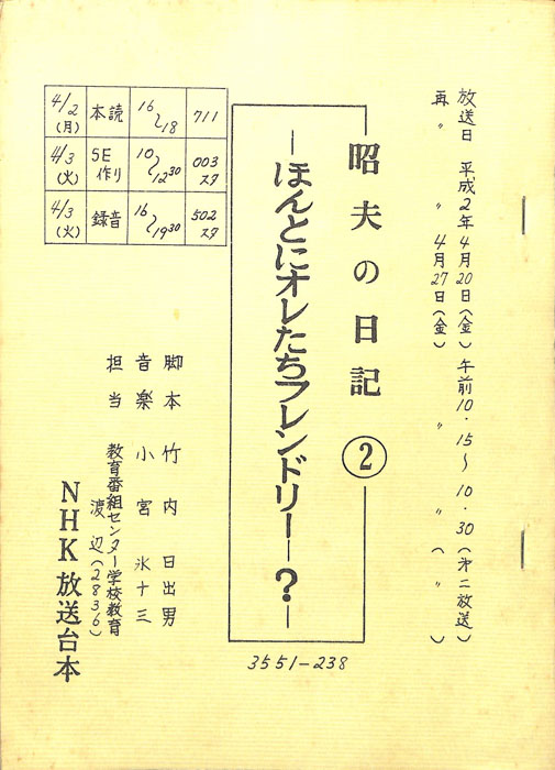 主な出演 : 橋満耕司,山本保夫,伊藤彰憲,塩月徳子,美島あかり,名取幸政,清水照夫,長谷川弘,島可津見,川崎真子,吉田正子,代田鑑之,坂本法子,山本辰雄,(ナレーター)岸田今日子