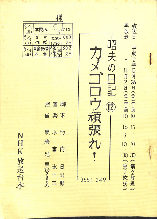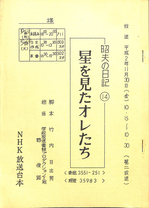 主な出演 : 新井昌和,橋満耕司,城山美佳子,横関志磨子,伊藤秀和,大谷輝彦,池田進,岡守,細川明,代田鑑之,小山友成,根本まりえ,山中かずき,上野光雪,須藤玲子,室伏高志,天草四郎,石田政雄,頭師孝雄,福岡正剛,(ナレーター)木内みどり- 作家 : 松井稔,須藤公三,山本伊知郎
