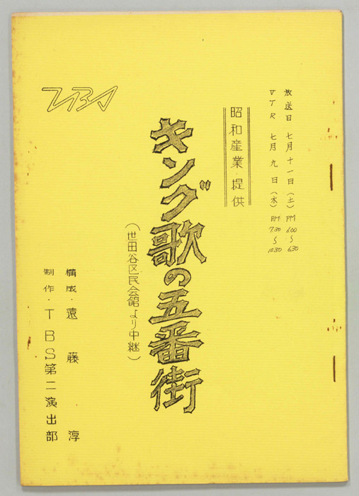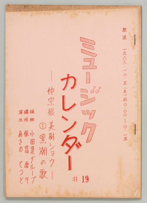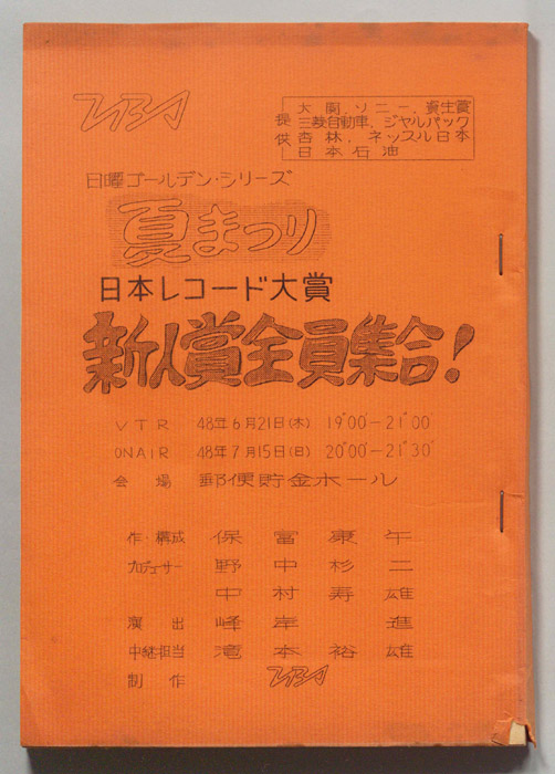 主な出演 : 春日八郎,仲宗根美樹,倍賞千恵子,金井克子,アントニオ古賀,原田信夫とファイブキャラクターズ,獅子てんや,瀬戸わんや,スターダストガールス,白磯たけ子とゲイスターズ,新室内楽協会,三味線 豊寿- 作家 : 西野晧三
