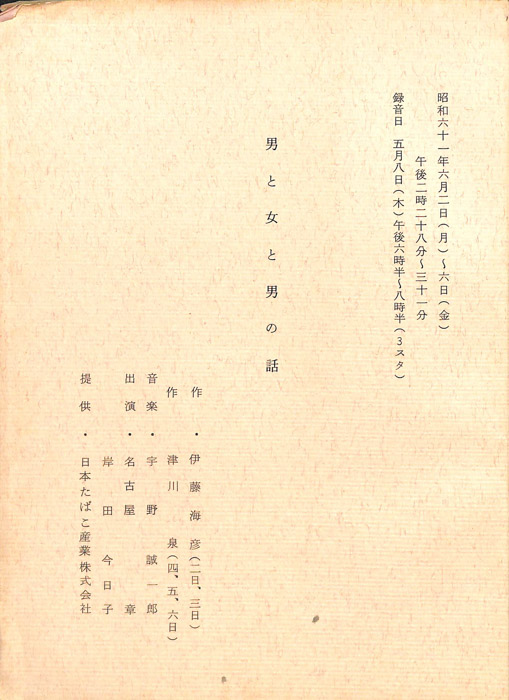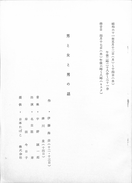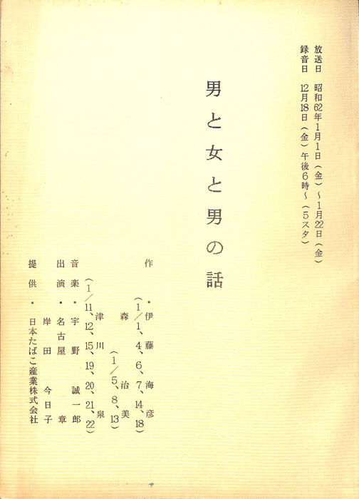 主な出演 : 庄司永建,松原祥量,坂本新兵,菅沼赫二,はせさんじ,矢野間啓治,臼木政子,楠田薫,玉川伊佐男,日恵野晃,松村彦次郎,上田敏也
