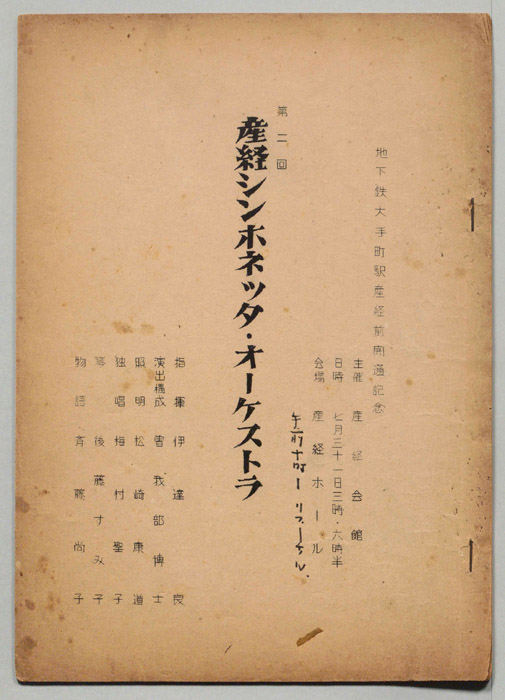 主な出演 : (指揮)伊達良,(独唱)梅村聖子,(琴)後藤すみ子