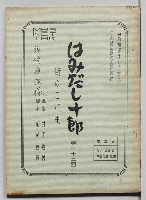 主な出演 : 藤田まこと,(以下手書き)立原博,由利徹,石川進,佐々十郎,ダイマル,ラケット,藤純子,楠トシ江,桜京美,田中春男,山城新伍,南都雄二,白木みのる,尾上鯉之助,大前釣,阿部九十男,加藤浩,原京市,河村満和,時田一男,八坂京子,有島淳平,結- 作家 : 舘直志