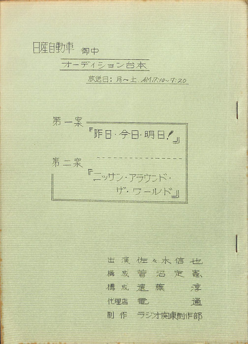 第一案「昨日、今日、明日」 第二案「ニッサン・アラウンド・ザ・ワールド」