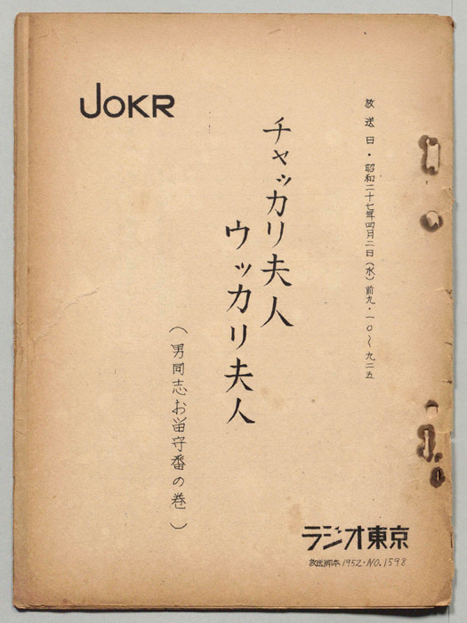 主な出演 : (チャッカリ夫人),(たづ子),(逆巻三平),(魚政),(ウッカリ娘=道子),(婦解=ナレーター)