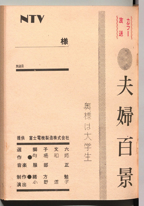 主な出演 : (第三十一回)日野麻子,南弘子,佐原健二,前田昌明,平井昌一,水科慶子,(ナレーター)松島和子,(第三十二回)日野麻子,南弘子,佐原健二,前田昌明,水科慶子,(ナレーター)松島和子,(第三十三回)日野麻子,南弘子,前田昌明,平井昌一,水
