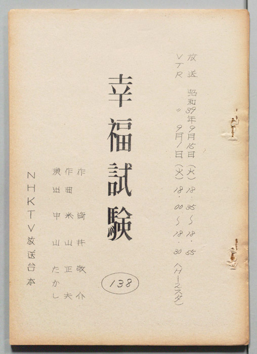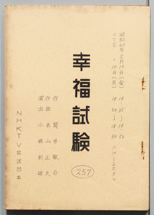主な出演 : 旗照夫,東郷晴子,磯部玉枝,西口紀代子,中村美代子,柳生博,竜岡晋,日野麻子,宮部昭夫,坂本和子,佐東朝夫,大森暁美,陸路久子