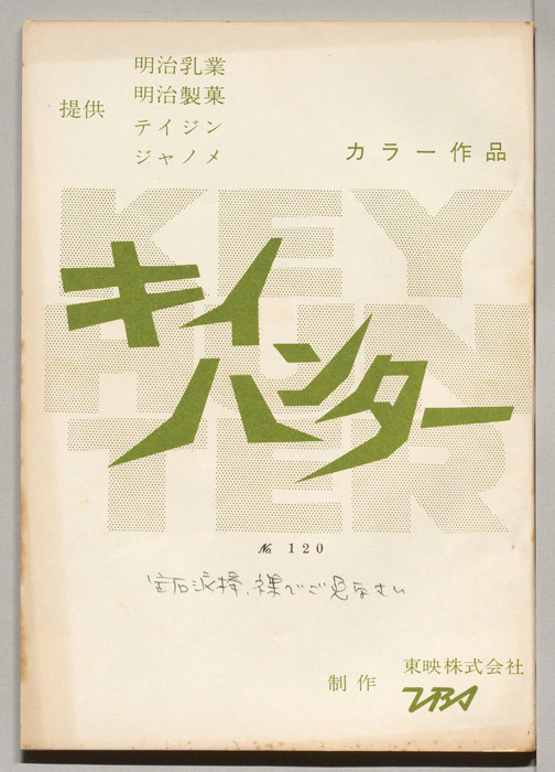 主な出演 : 丹波哲郎,野際陽子,谷隼人,大川栄子,千葉真一,仲谷昇,稲垣美穂子,(ナレーター)芥川隆行,(以下手書き)ハンス・ホルネク,北原義郎,佐藤京一,中村孝雄,丹羽又三郎- 作家 : 櫻井康裕