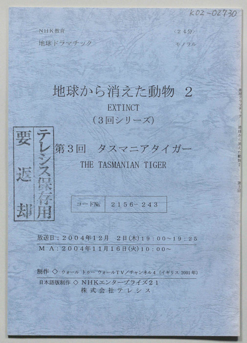 - 収蔵先 : 倉庫