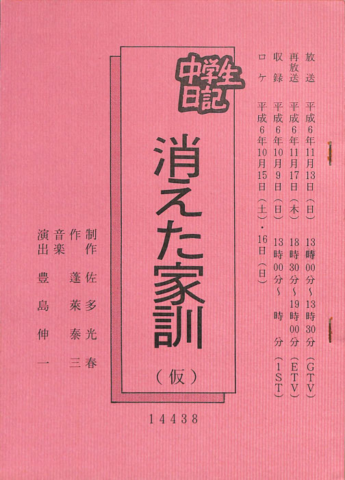 主な出演 : 前川光弘,佐藤輝【中学生日記】 中学生日記は1972年から2012年3月まで長きに渡って放送された学園ドラマである。1962年4月から放送された「中学生次郎」という番組を前身とし、何度か番組名を変更しつつ本ドラマに至る。最
