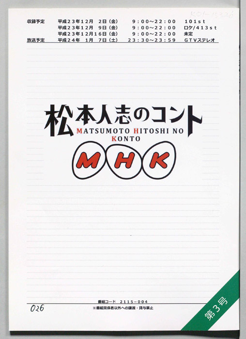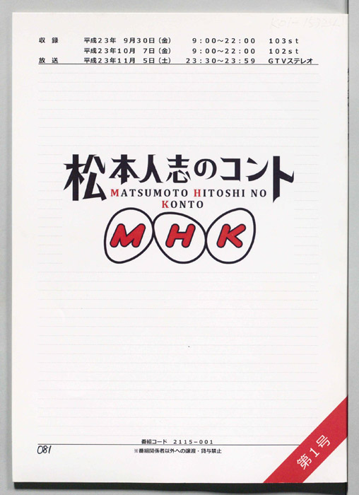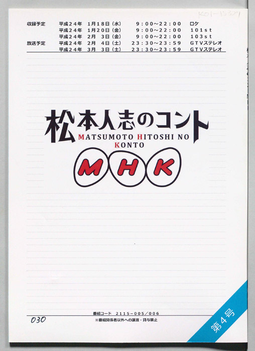 • 作家 : 松本人志,高須光聖,倉本美津留,長谷川朝二,江間浩司