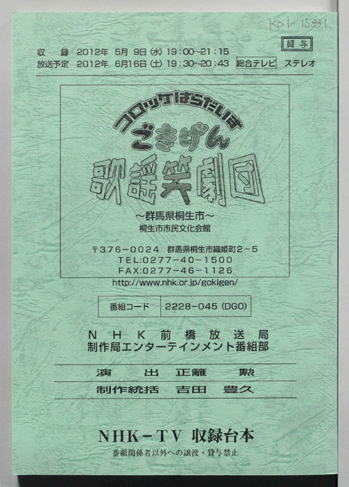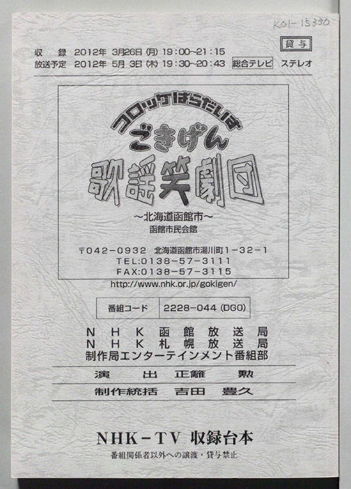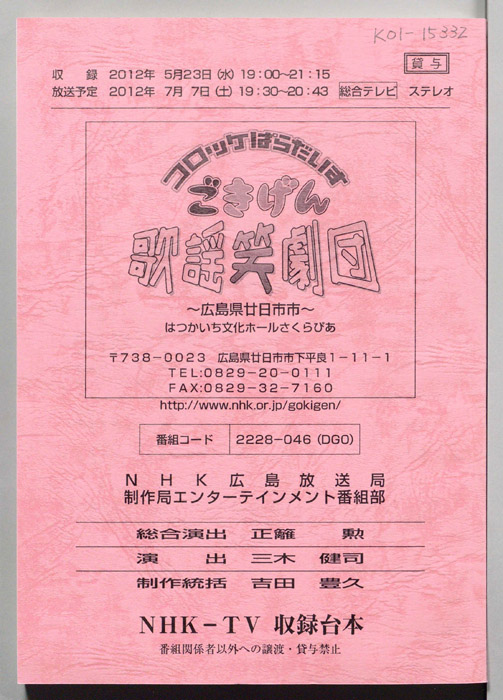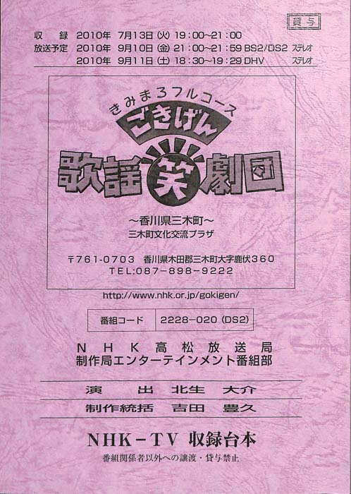 主な出演 : 綾小路きみまろ,橘大五郎,さかなクン,鳥羽一郎,中村美律子,山本智子,吉幾三,村岡弘之,藤榮史哉,玄也,菅由彩子,佐武宇綺,ツーライス