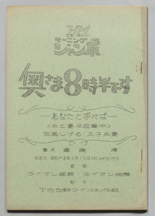 主な出演 : アントニオ古賀,克美しげる,ファイブ・キャラクターズ,金井克子,本間千代子,こまどり姉妹,和田弘とマヒナ・スターズ,スターダスト・ガールズ- 作家 : 西野晧三