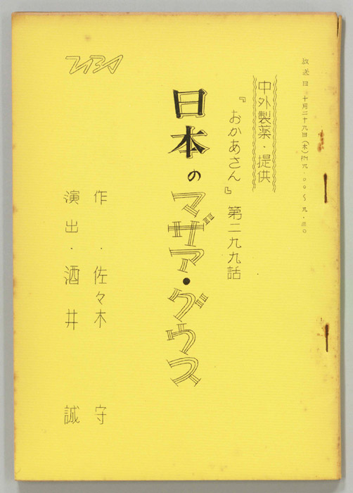 主な出演 : 浜木綿子,すまけい,北村和夫,三浦リカ,大場順,酒井麻吏,(以下手書き)木村一八,白木万理,平野稔,八木昌子,小林誠,山浦栄,近藤準,時本和也(?),中川美穂子,山田甲一,石田哲也,山本緑(?),小早登枝恵(?)