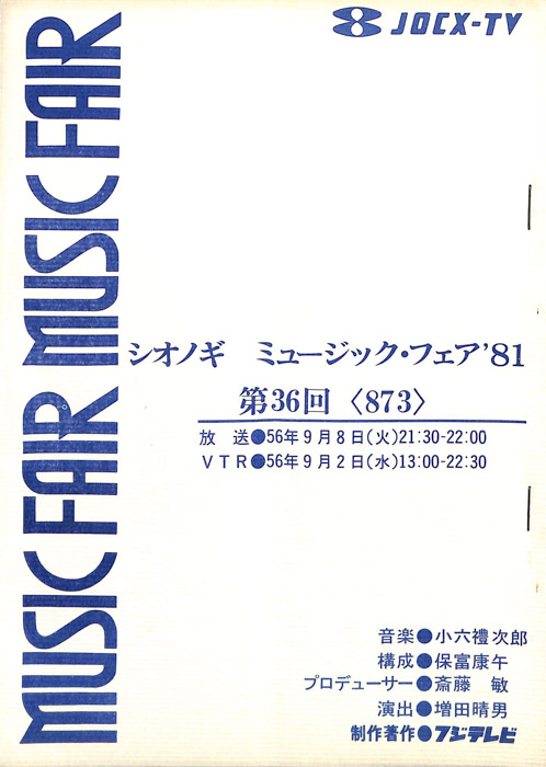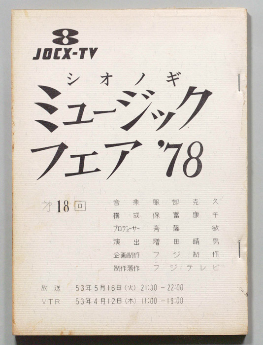 主な出演 : 五輪真弓,ハイファイ・セット,八神純子,(司会)長門裕之,南田洋子