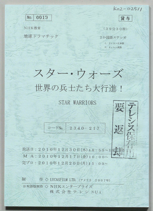 主な出演 : 朱)小林清志,(アジラダ)西村知道,(双乾)中村秀利,(ガウニー)北村弘一,(カミュ―)江戸家梨香,(機関長:C150),(兵士:C200),兵士たち),(町人たち),(下士官:C198~・Na)大滝進