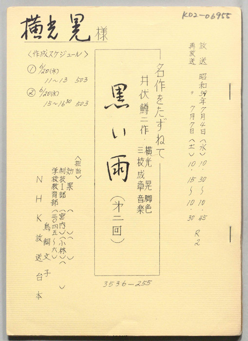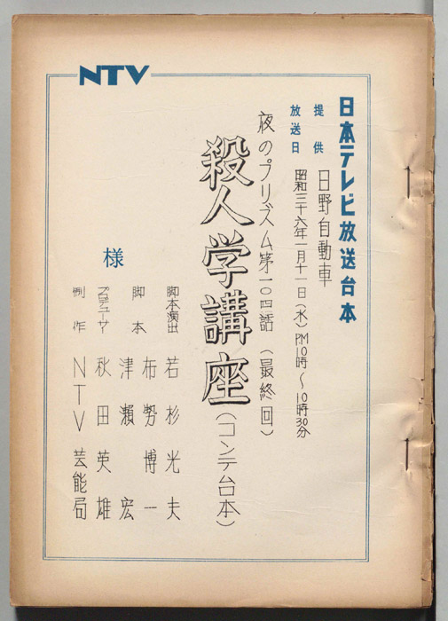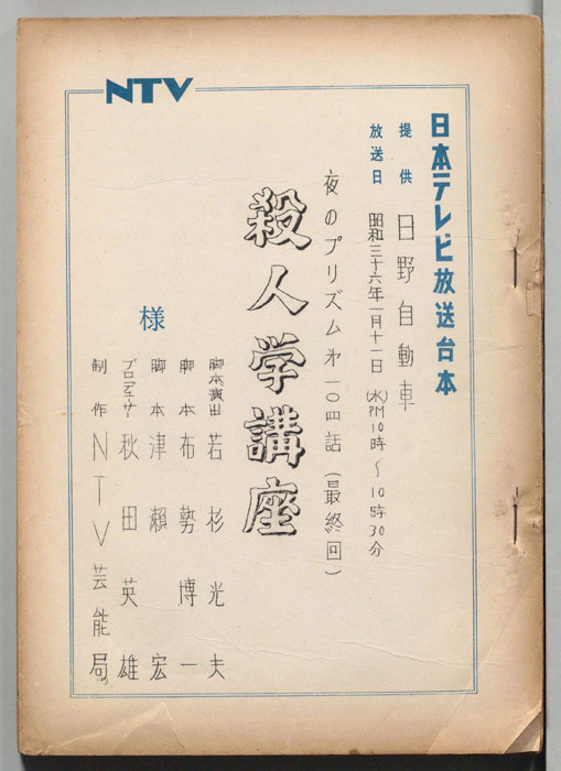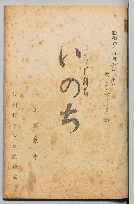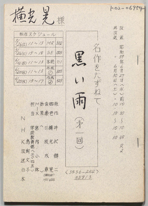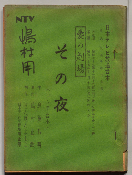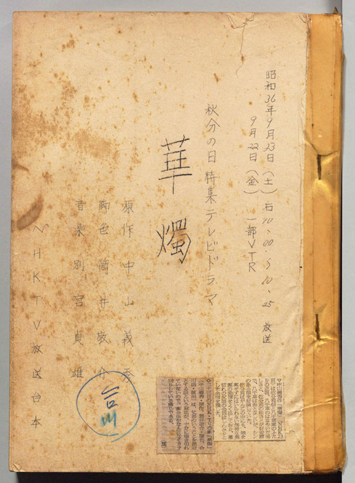 主な出演 : (すべて手書き)佐分利信,八千草薫,川合伸旺,塚本信夫,内田稔,佐野タダ枝,英百合子,高橋正夫,永田靖