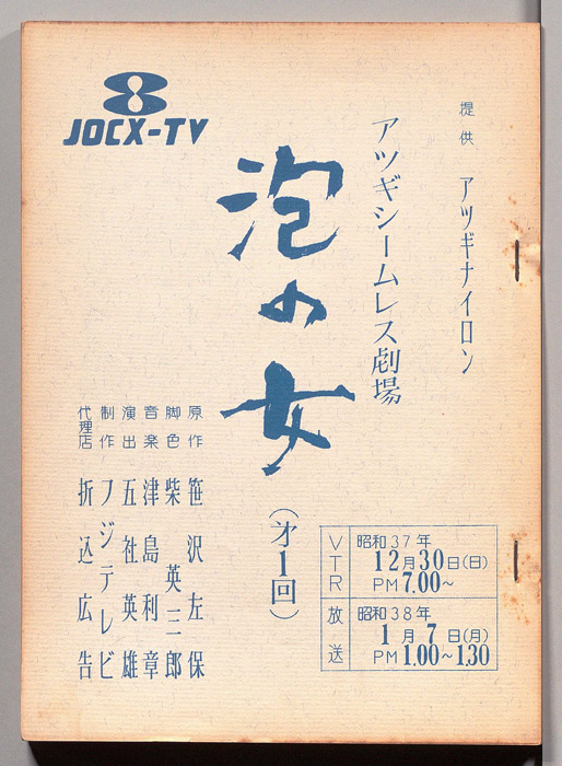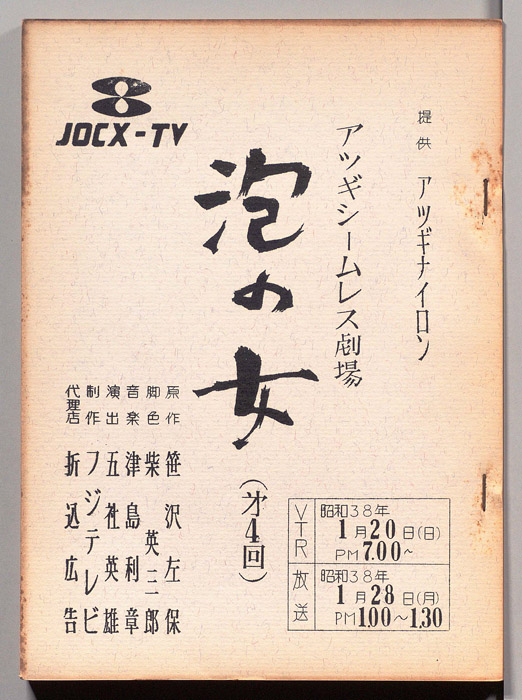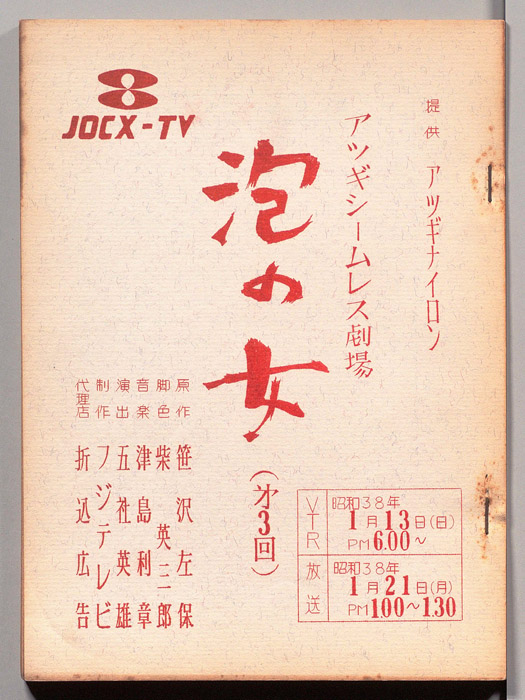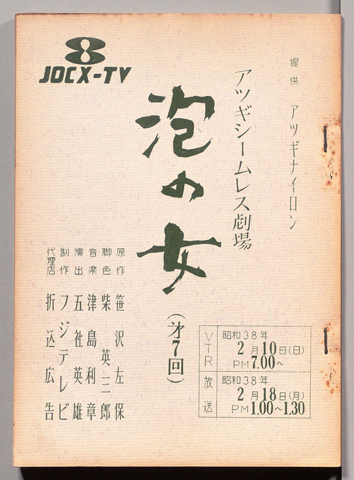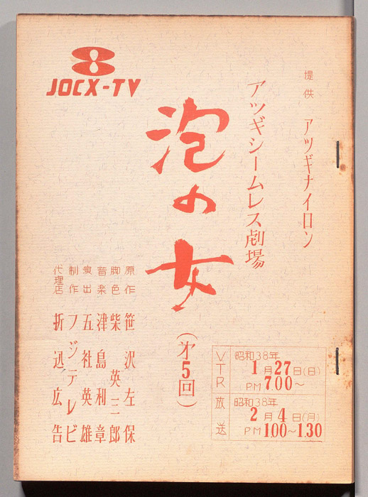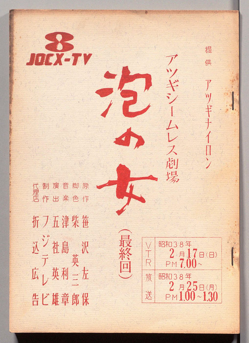主な出演 : 桑山正一,荒木道子,田代信子,稲垣昭三,内田稔,(手書き)各信子,矢野政子,坂本真琴,野中悦子,藤井那智子,白井正明