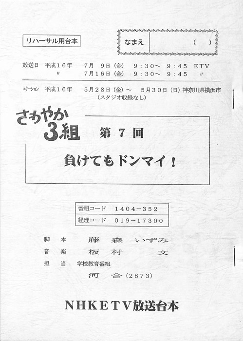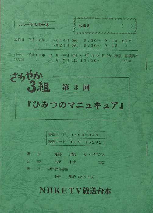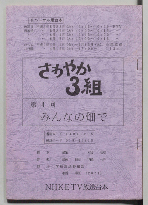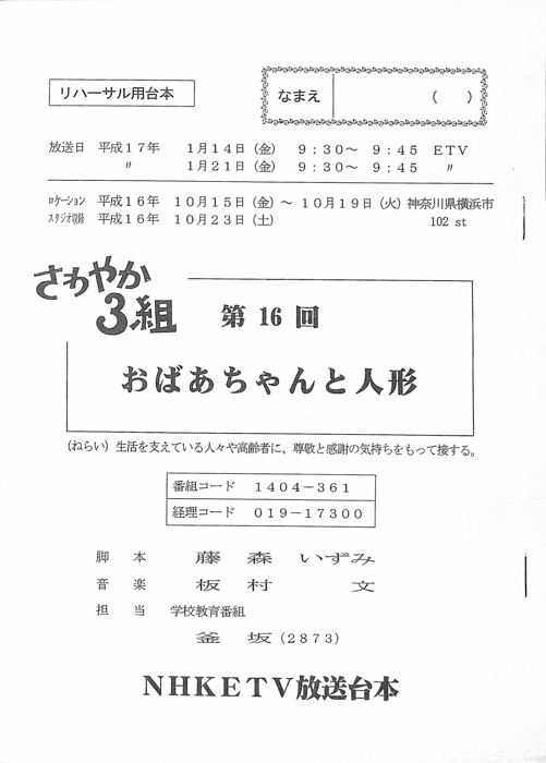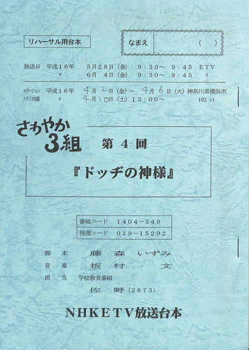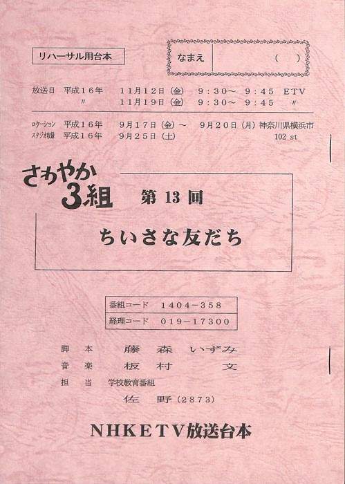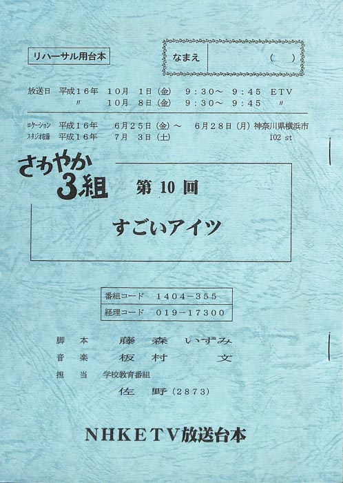 主な出演 : 神崎紗蓉子,北川潤,小井紗陽」出演で注目を集めた前田公輝も子役として出演しており、彼はのちに2022年上半期連続テレビ小説「ちむどんどん」でNHK朝ドラにも出演。また本作の系譜を受け継いだ「もやモ屋」という番組が、同じくNHK教育テレビジョンにて放送されている。- 作家 : タカハタ秀太