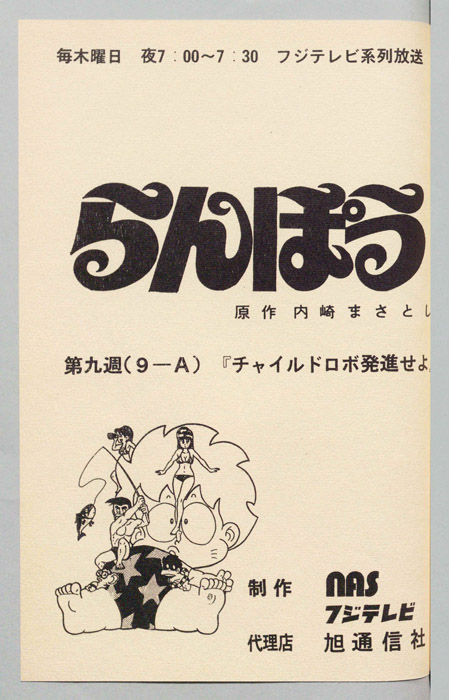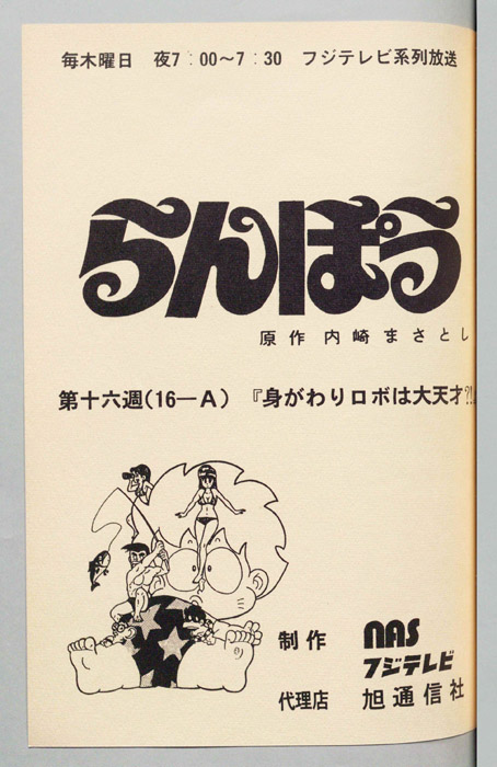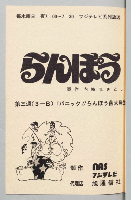 主な出演 : (らんぽう)坂本千夏,(カラ太郎)亀山助清,(ハルク)沢木郁也,(ワッペン)二又一成,(むつみ)及川ひとみ,(あけみ)室井深雪,(ゴルゴ),(ジャイアント),(アントニオ),(猫たち),(角丸)田中秀幸,(チュー太郎)田【らんぽう】中学校で優等生として知られていた『らんぽう』。彼はある日、謎のUFOと遭遇して、その内部に引き込まれ手からというもの、優等生の片鱗はなくなり、不思議な能力を身につけたイタズラな少年になってしまった。そ