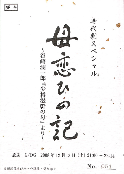 主な出演 : 黒木瞳,劇団ひとり,内山理名,本田博太郎,谷端奏人,秋間登,鷲生功,山本哲也,佐々木研,葉山和彦,加藤千安樹,井口恭子,那須佐代子,岡野真那美,大滝秀治,長塚京三,